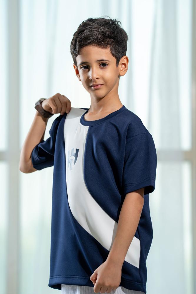 تيشيرت نادي الهلال يتميز بتصميم أنيق وعصري يعكس روح الفريق العريق والانتماء الرياضي بكل فخر. يأتي بلون كحلي جذاب مع شريط أبيض طويل على الصدر يحمل شعار النادي وكلمة “ALHILAL – الهلال” بطباعة واضحة وأنيقة.