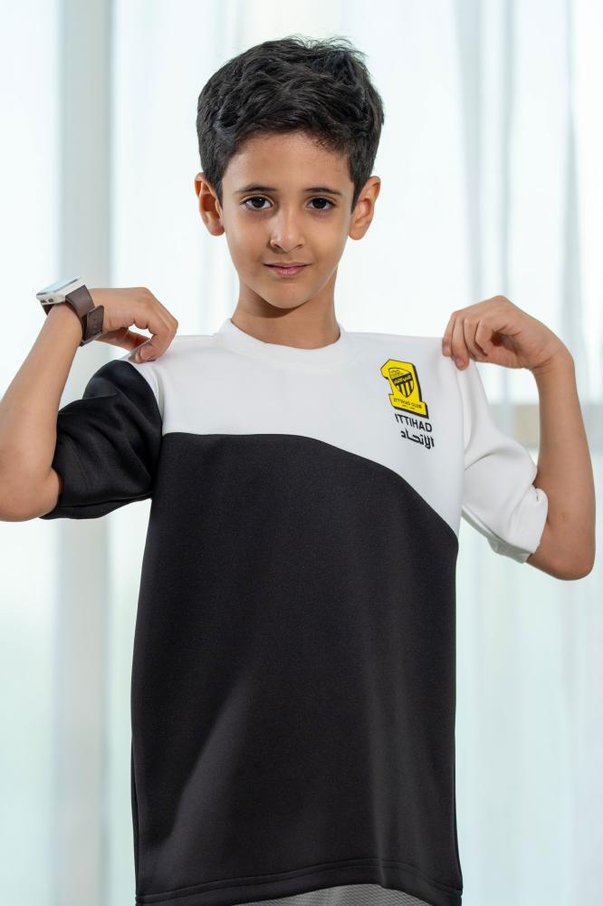• الهوية: شعار نادي الإتحاد مطبوع بدقة يمنح التيشيرت طابعاً فخرياً لكل مشجع.