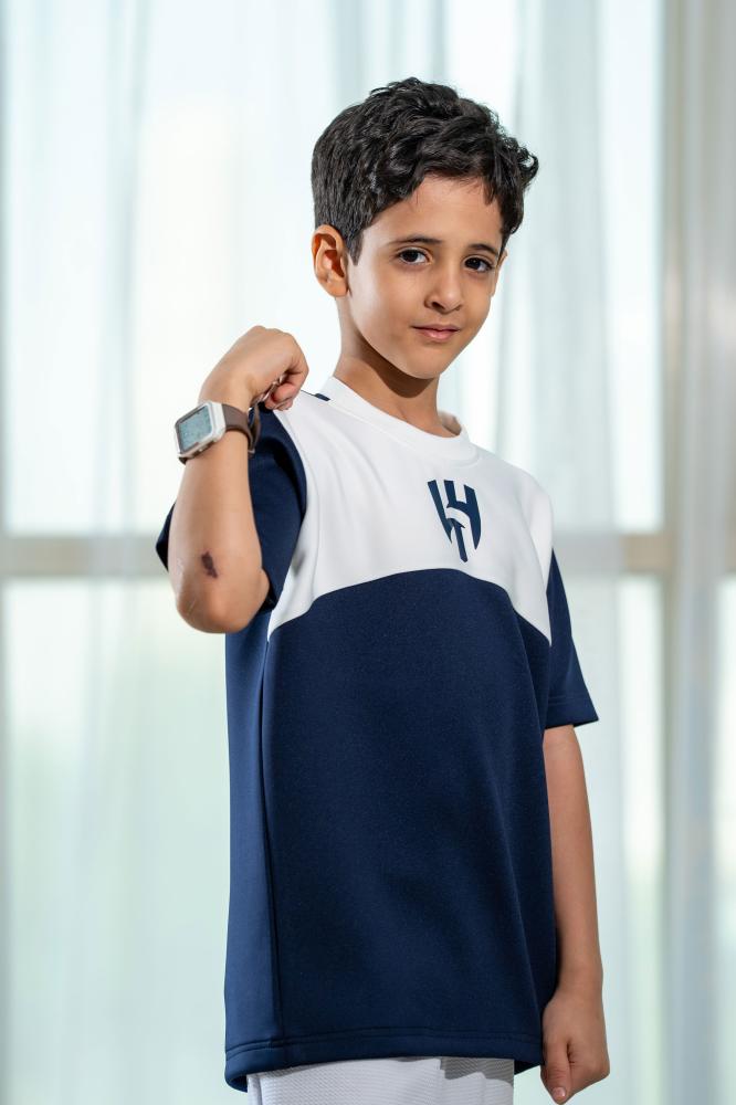 تيشيرت نادي الهلال يتميز بتصميم أنيق وعصري يعكس روح الفريق العريق والانتماء الرياضي بكل فخر. يأتي بلون كحلي جذاب بإنحناء مائل أبيض على الصدر يحمل شعار النادي ” بطباعة واضحة وأنيقة.