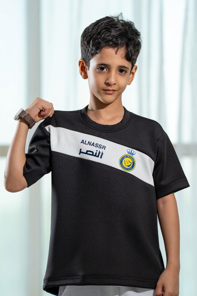 • الهوية: شعار نادي النصر مطبوع بدقة يمنح التيشيرت طابعاً فخرياً لكل مشجع.